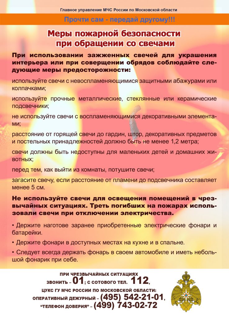 Меры пожарной безопасности при обращении со свечами